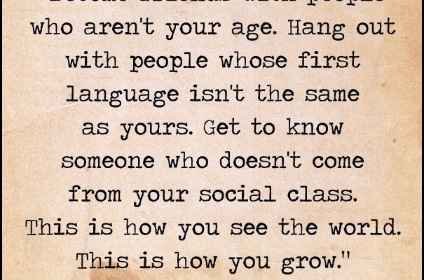 “Become friends with people who aren’t your age. Hang out with people whose first language isn’t the same as yours. Get to know someone who doesn’t come from your social class. This is how you see the world. This is how you grow.”