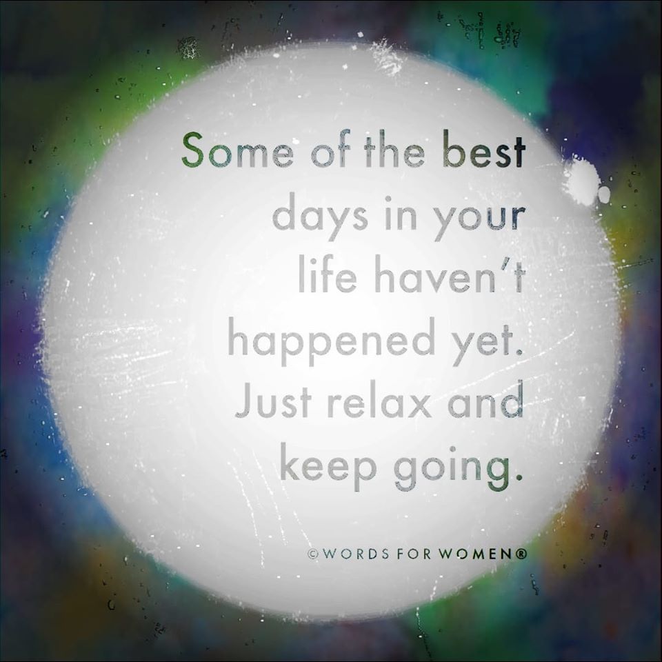 Some of the best days in your life haven’t happened yet. Just relax and keep going.