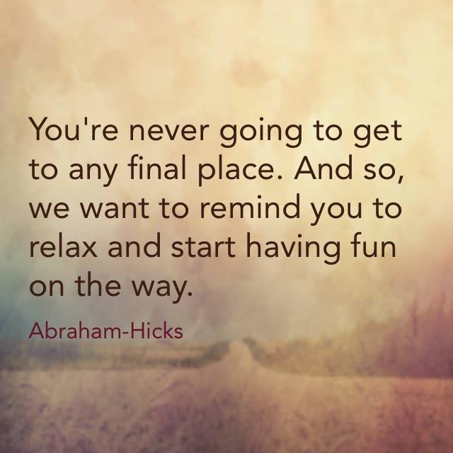“You’re never going to get to any final place. And so, we want to remind you to relax and start having fun on the way.” – Abraham-Hicks