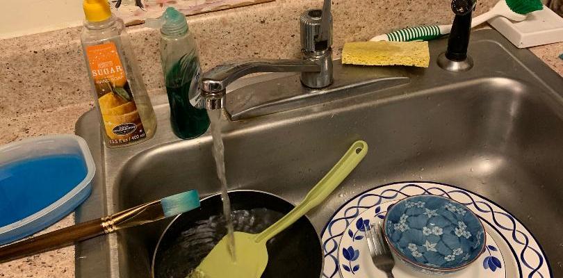 Wash your dishes first, before you wash your paint brushes! You don’t want to get paint all over them, right?!