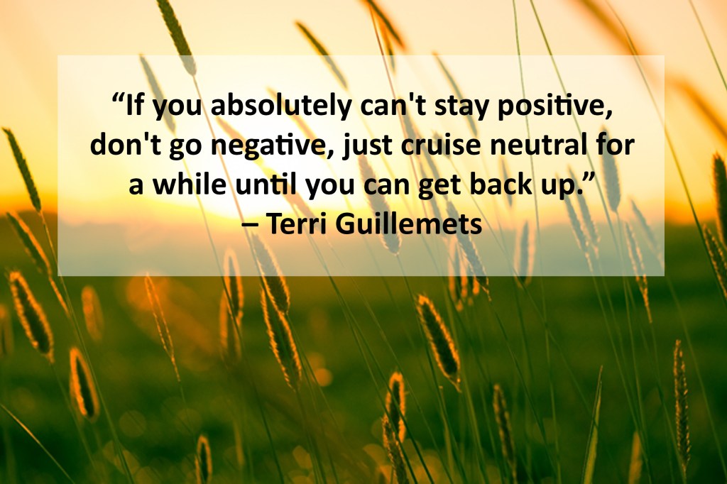 “If you absolutely can’t stay positive, don’t go negative, just cruise neutral for a while until you can get back up.” – Terri Guillemets
