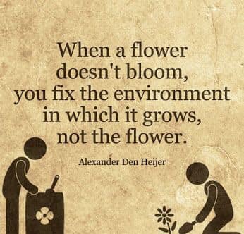 “When a flower doesn’t bloom, you fix the environment in which it grows, not the flower.” – Alexander Den Heijer