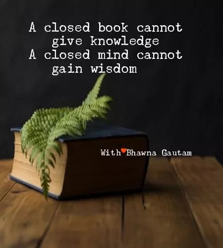 5 thoughts on “A closed book cannot give knowledge. A closed mind cannot gain wisdom.”