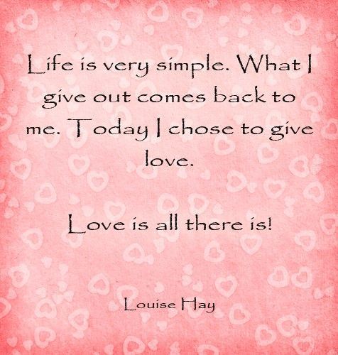 “Affirmation: Life is very simple. What I give out comes back to me. Today I chose to give love. Love is all there is!” – Louise Hay