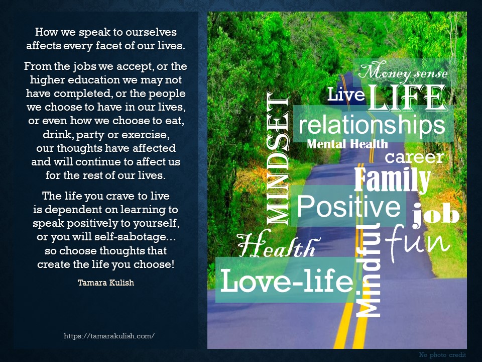 The life you crave to live is dependent on learning to speak positively to yourself, or you will self-sabotage… so choose thoughts that create the life you choose!