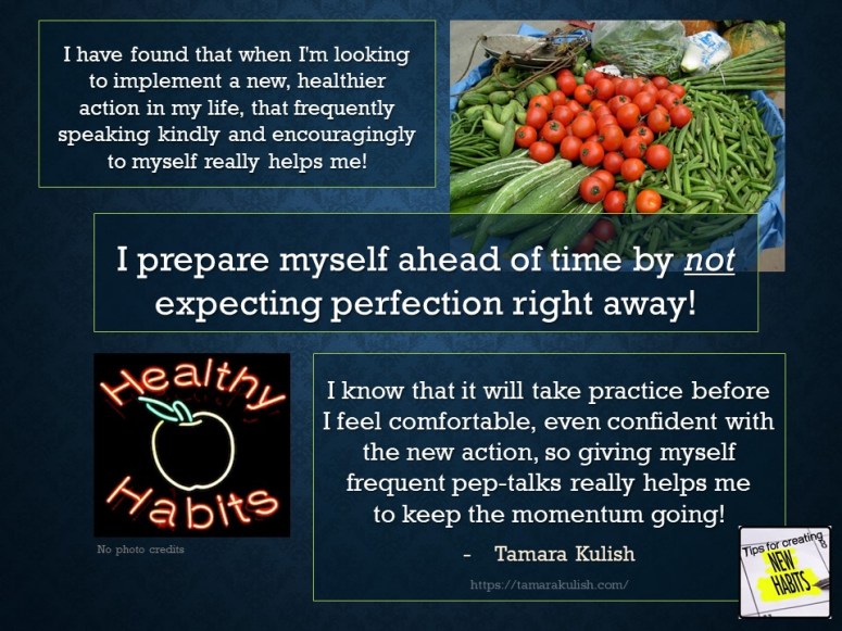 I have found that when I’m looking to implement a new, healthier action in my life, that frequently speaking kindly and encouragingly to myself really helps me!