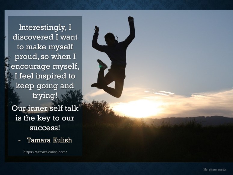 Interestingly, I discovered I want to make myself proud, so when I encourage myself, I feel inspired to keep going and trying!