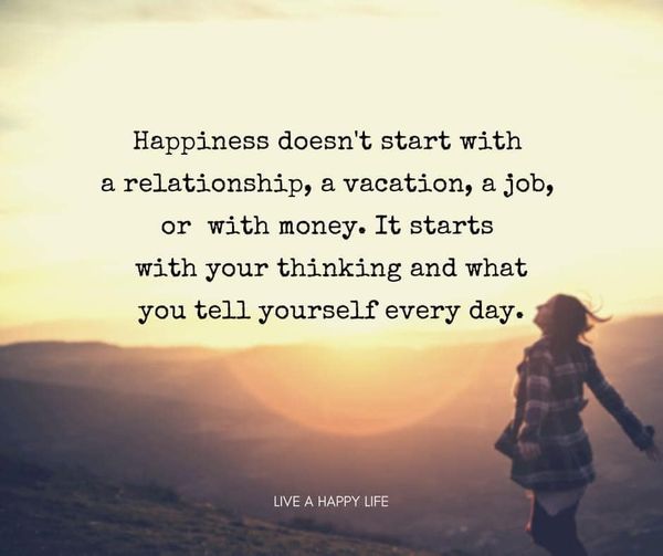 - Happiness starts with you. Not with your relationships, not with your job, not with your money, but with you!