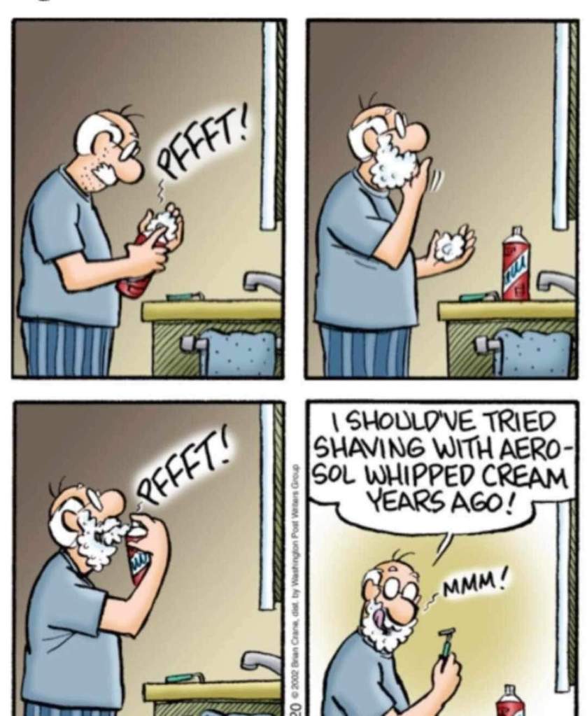 Yes, whipping cream now comes in seasonal flavors! Peppermint candy, pumpkin spice…! Shaving can definitely become more fun… and fattening!